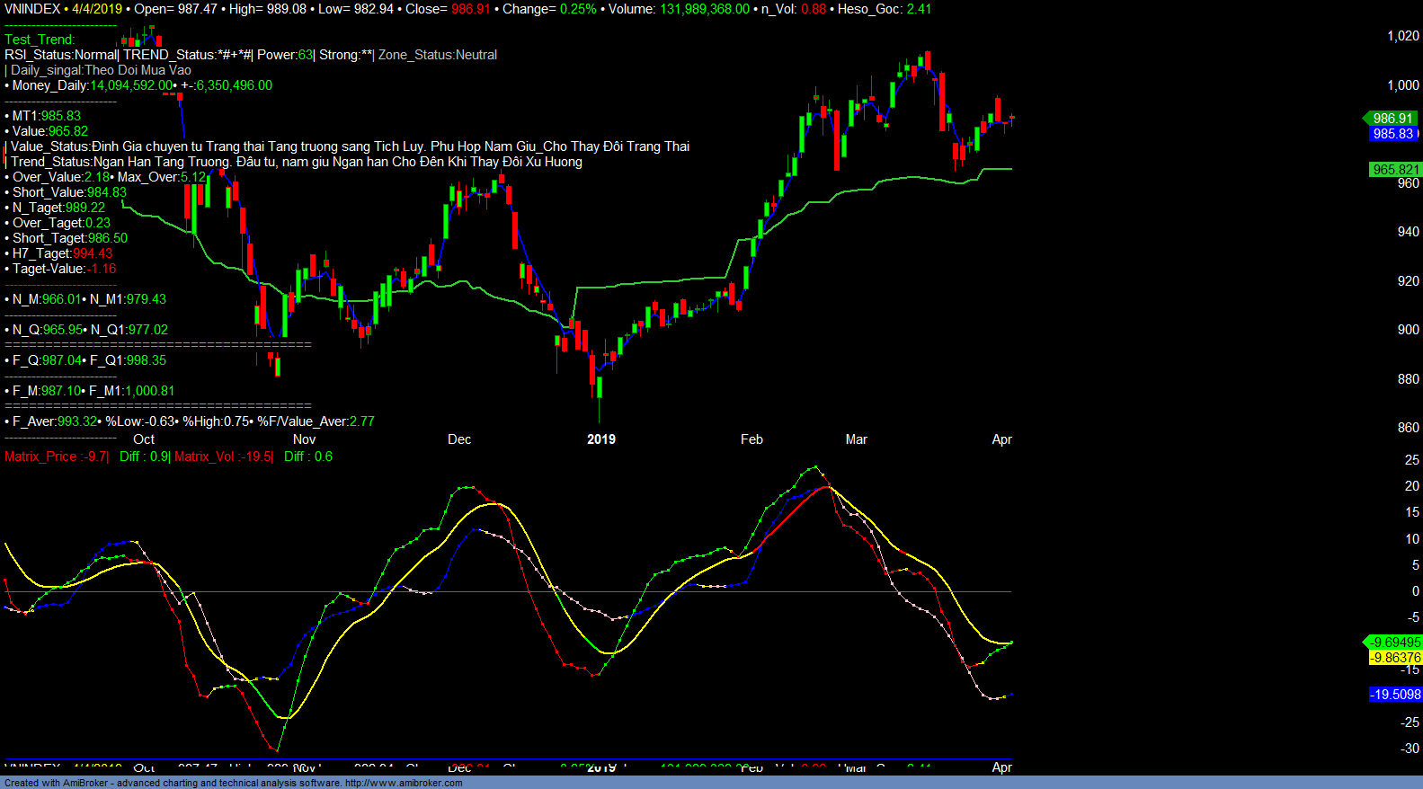 + VNINDEX vẫn biến động trong biên độ hẹp dưới ảnh hưởng của một số mã trong VN30. Tuy nhiên, dòng tiền ngắn hạn tiếp tuc gia tăng, lực cầu đối với VNINDEX đã thắng lực cung. Lực cầu của VN30 cũng có thể thắng cung trong vài phiên đến, VN30 cũng đang có tín hiệu theo dõi mua ngắn hạn. Như vậy, mặc dù VNINDEX, VN30 biến động trong biên độ hẹp, nhưng khẳ năng sinh lợi ngắn hạn, các vị thế mua ngắn hạn vẫn gia tăng. Số lượng đạt chuẩn tăng trưởng toàn diện gia tăng trở lại. Do đó, các vị thế mở mua, gia tăng tỉ trọng đầu tư, đầu cơ ngắn hạn vẫn được khuyến nghị mở thêm, tùy thuộc vào từng mã. Các tín hiệu mua sẽ được cập nhật mới trong danh mục khuyến nghị cho đến khi Lực Cầu trên VNINDEX và dòng tiền money_in có tín hiệu suy yếu.