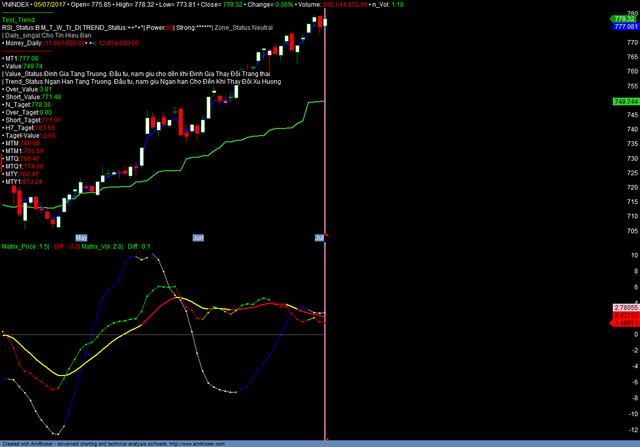 + Dự kiến Vùng kháng cự và taget của VNINDEX là 800-810, HNXINDEX là 103-108. Dự kiến tại vùng giá này thị trường sẽ chưa thể vượt qua được trong vòng 1-2 tháng tiếp theo. Không nên mở thêm vị thế mua mới tại vùng này, tiếp tục nắm giữ cổ phiếu theo xu hướng ngắn hạn của từng cổ phiếu. Chi tiết tham khảo Matrix_Filter.