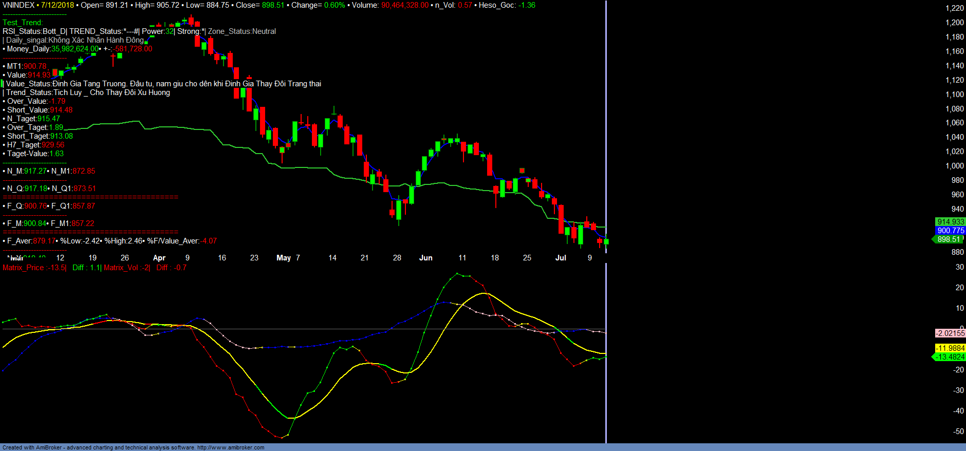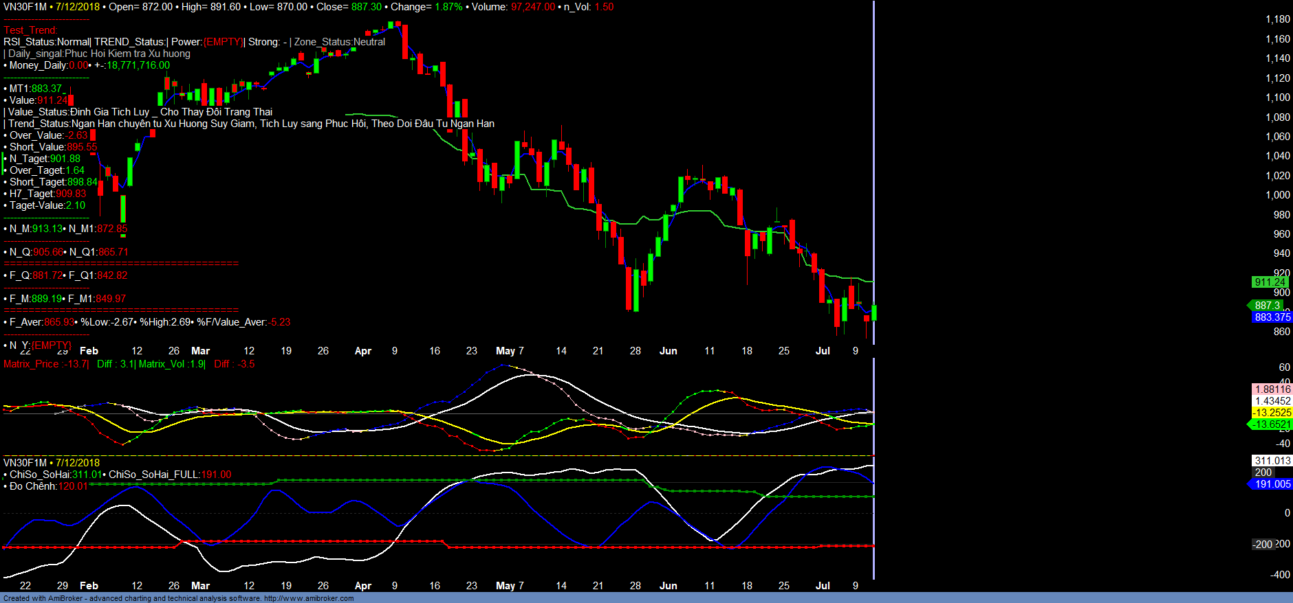 + VNINDEX, VN30 đã phục hồi trở lại sau phiên giảm điểm ngày 11/07/2018 với khối lượng giao dịch giảm -34,5% với VNINDEX và -37,84% với VN30, dòng tiền suy giảm trở lại. Số lượng mã có Xu hướng Định giá chuyển từ Tăng trưởng qua Tích lũy ngày càng gia tăng với một số cổ phiếu đại điện như SSI, FPT, HDG, LHG… cho tín hiệu kết thúc quá trình tăng trưởng mạnh tính từ 2016 cho đến nay. Trong đó SSI là cố phiếu đại diện, có tính chất thị trường. Khi xu hướng chuyển từ Tăng trưởng sang Tích lũy, lúc này cổ phiếu chỉ phù hợp lướt sóng ngắn hạn và chờ nhịp hồi phục xem xét cơ cấu danh mục đầu tư, chưa phù hợp để Đầu tư Tăng trưởng. SSI dự kiến sẽ tích lũy trong biên độ 24-28. Đối với các cổ phiếu Tích Lũy, chỉ xem xét mở mới vị thế đầu tư khi và chỉ khi Cổ phiếu đấy được nâng bậc xếp hạng tăng trưởng cũng như có Định giá tăng trưởng trở lại.