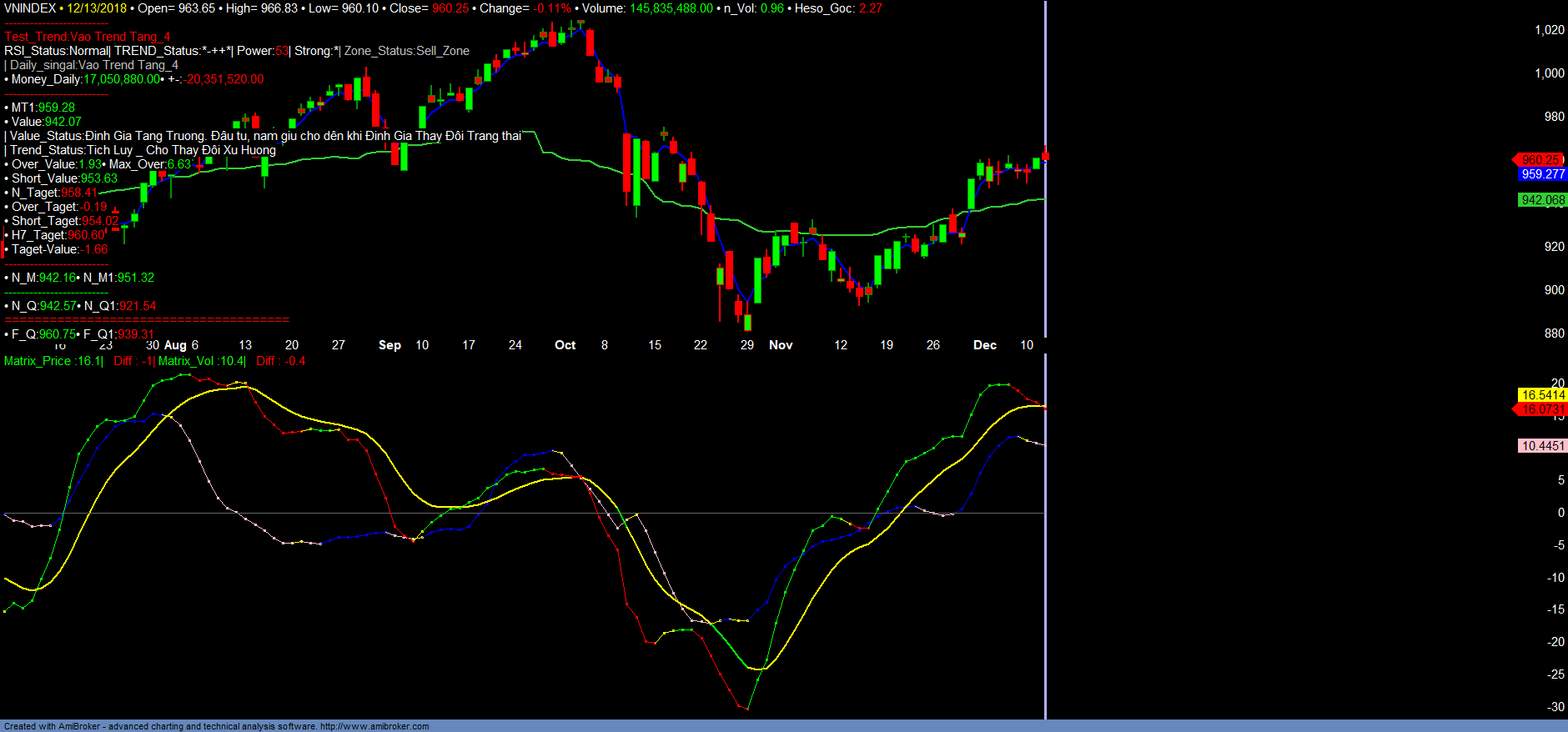 + VNINDEX đang có tín hiệu vào trend tăng mới. Đặc điểm của trend tăng này là biến động rất hẹp và có thể bảo đảm xu hướng ko biến động giảm mạnh với hỗ trợ mạnh của trend tăng là 945-950, thời gian kéo dài từ đây đến cuối năm 2018, với mục tiêu 980+-. Diễn biến dòng tiền và trend_up cho thấy đây là giai đoạn các mã Luân phiên phục hồi, luân phiên tích lũy như báo cáo Tổng kết tháng 11/2018.