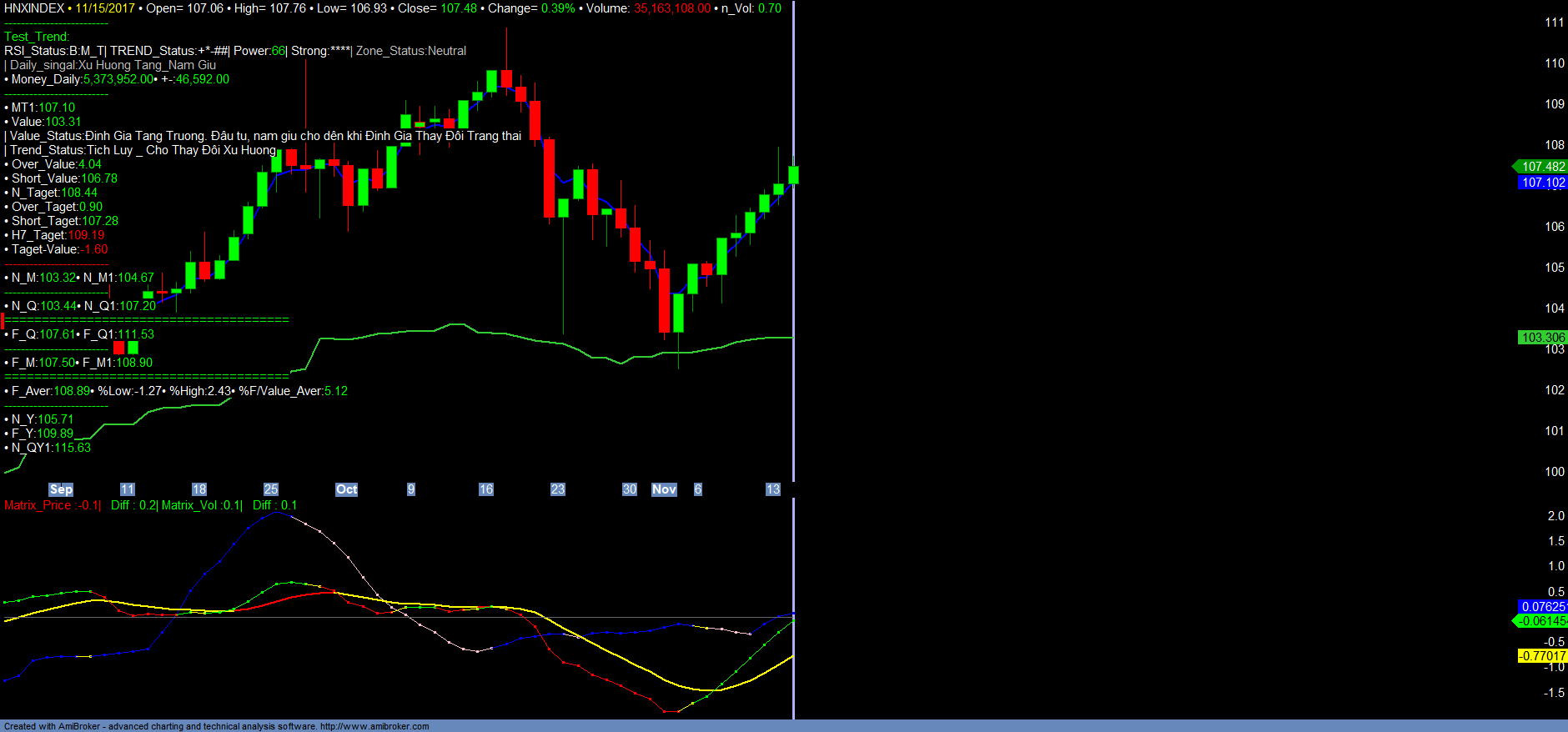 – VNINDEX vẫn tiếp tục tín hiệu tăng trưởng Strong_trend dưới ảnh hưởng của VN30. VN30 tiếp tục đi vào vùng Over mạnh. Lần đầu tiên VN30 đang over thị giá gần 7% cũng như lần đầu tiên VN30 có khẳ năng vượt VNINDEX, cho thấy thị trường đang kỳ vọng vào mức tăng trưởng mới. Thông số Sức mạnh tăng trưởng của VN30 cũng đang tiến vào vùng >100, điều này cho thấy xu hướng tăng giá của VN30 là rất mạnh. Khi sức mạnh Power của VN30 >100 thì ngắn hạn sẽ xảy ra rung lắc . Ngắn hạn, tín hiệu dòng tiền của VN30 đang suy giảm dần, nên cần tích lũy chờ định giá tăng trưởng. Vì vậy nhà đầu tư nên hạn chế mua đuổi giá cao nhóm mã đã tăng mạnh trong VN30, cũng như 1 số mã thoái vốn tăng mạnh. Tiếp tục nắm giữ, duy trì danh mục theo xu hướng. HNXINDEX dòng tiền đã tăng trưởng lại tốt, khối lượng giao dịch phục hồi mạnh và hướng về vùng đỉnh cũ 110-112 để kiểm tra lại kháng cự mạnh dài hạn. Dư kiến tại thời điểm hiện nay HNXINDEX vẫn chưa tích lũy đủ điều kiện để vượt được vùng kháng cự manh này, mà sẽ tiếp tục tích lũy để chờ định giá của thị trường nâng lên. Chờ HNXNIDEX xác nhận quay trở lại xu hướng tăng trưởng ngắn hạn. Chi tiết tham khảo Matrix_Fiter và các Danh mục.