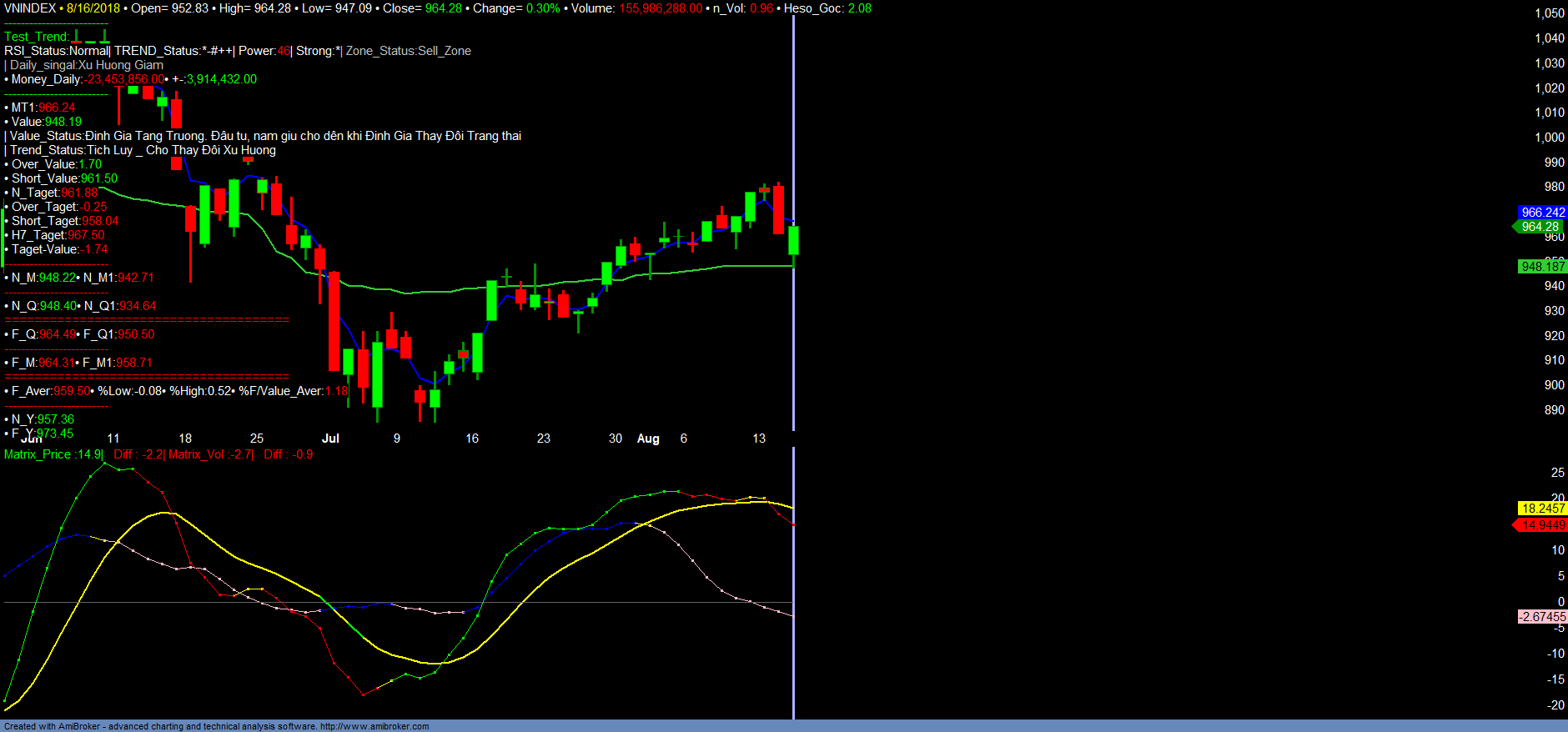 + VNINDEX, VN30 đã biến động quá nhanh và không thể phán ứng kịp, khi giảm rất mạnh từ vùng 98x Over >3% và điều chỉnh về vùng định giá 945-950 chỉ trong 2 phiên rồi phục hồi. Với tín hiệu dòng tiền, cho thấy rằng: Đối với 15-20% số mã phục hồi mạnh từ vùng đáy 890 lên 980 đã đạt taget chốt lãi ngắn hạn vào vùng bán cần bán, thì phần còn lại của thị trường hành động đúng nhất trong 02 phiên giao dịch vừa qua lại là không có hành động giao dịch gì. Với quan điểm đầu tư dài hạn, điều này vẫn luôn chuẩn mực.