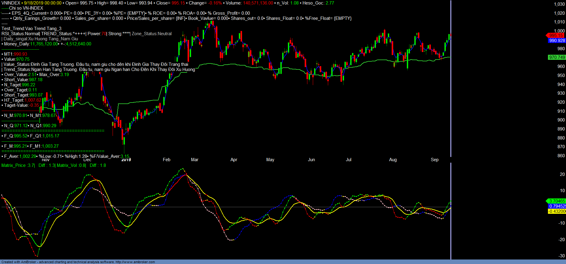 + Trend_up giảm nhẹ, Money_in tăng. Dòng tiền ngắn hạn duy trì tăng. Khẳ năng sinh lợi giảm nhẹ. Số lượng mã có vùng bán ngắn hạn tăng. Vùng mua ngắn hạn vẫn duy trì lớn hơn vùng bán. VNINDEX đang quay lại xu hướng tăng trưởng. Các mã có vùng mua ngắn hạn mở rộng, nổi bật qua các nhóm mã cảng biển, tiếp tục với nhóm Vật liệu xây dựng, nhựa, Dầu khí.. Các mã Bất động sản có tính chất đầu cơ, giảm giá tích lũy kéo dài như SCR, CEO.. hay các trong VN30 như HPG, vẫn có thể tiếp tục xem xét mở rộng, gia tăng đầu tư, đầu cơ ngắn hạn.