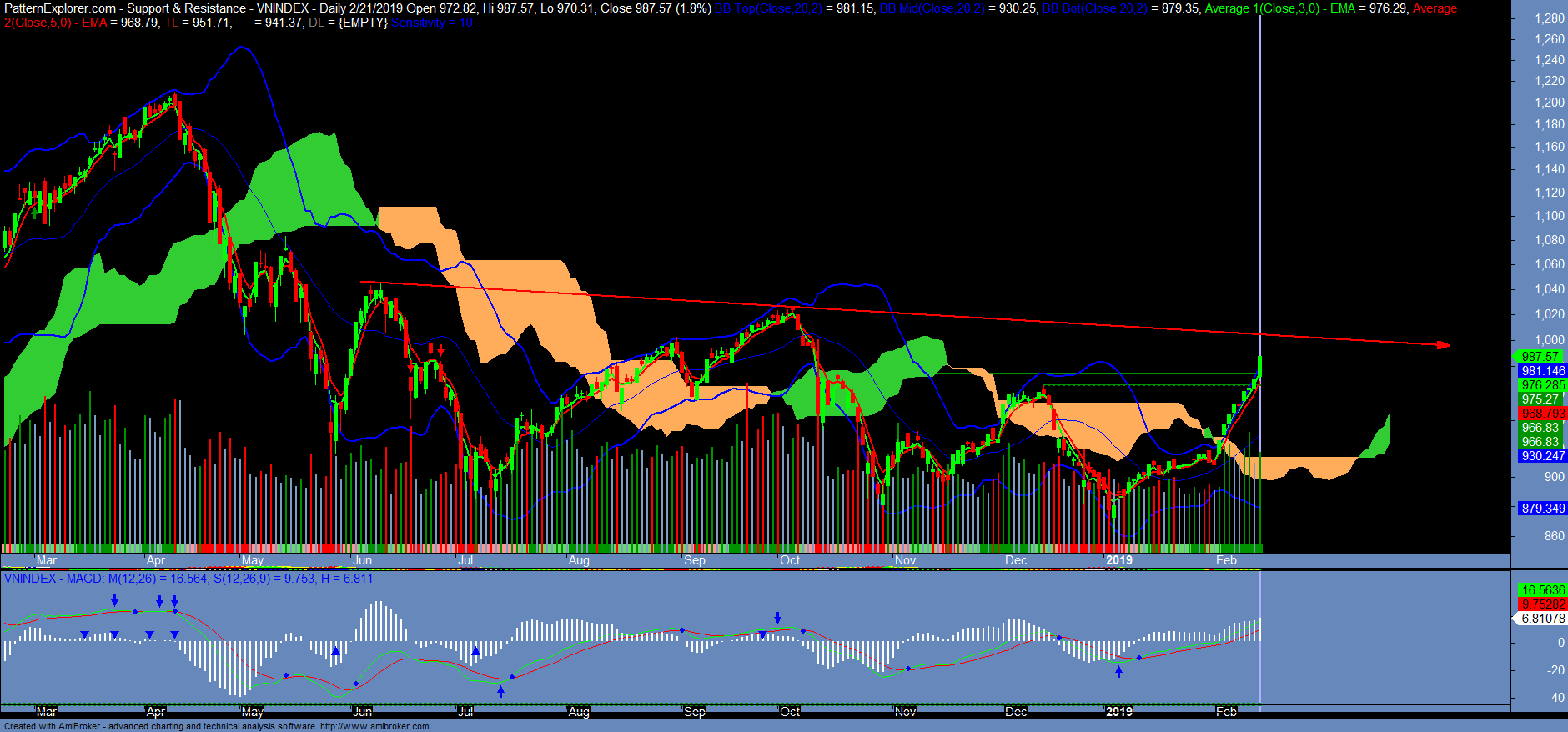 Nhận định thị trường ngày 22/02/2019: VNINDEX tăng mạnh_Vùng Over tối đa lịch sử 5%+- tương ứng 1000-1030