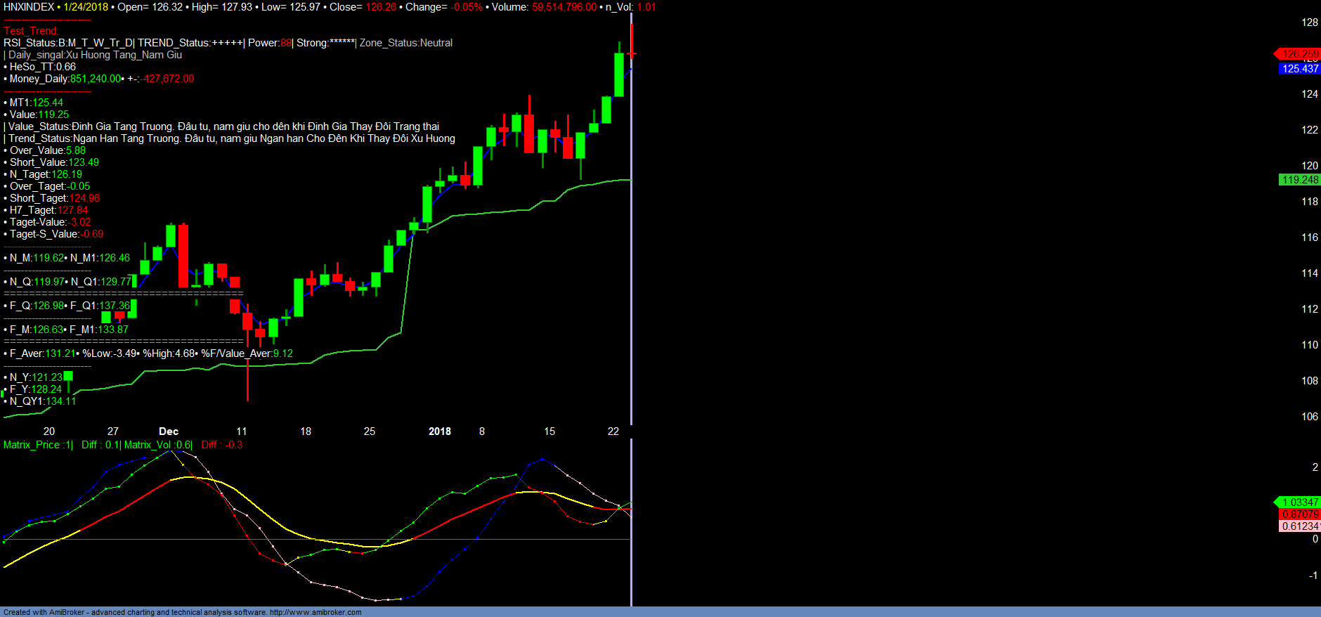 + HNXINDEX sau phiên giao dịch hưng phấn do dòng tiền ngắn hạn tìm kiếm cơ hội gia tăng lợi nhuận khi VNINDEX dừng giao dịch đã giao dịch chậm lại. HNXINDEX dưới ảnh hướng của một vài nhóm mã vẫn tiếp tục xu hướng tăng trưởng trung dài hạn với mục tiêu kỳ vọng ngắn trung hạn 135-140. Dòng tiền cũng xoay tua trong HNX nổi bật với PVI, NVB tăng mạnh mẽ trong những phiên giao dịch gần đây, với kỳ vọng tiếp tục nhịp tăng trưởng mạnh trung dài hạn. Nhà đầu tư nên kiên nhẫn chờ VNINDEX giao dịch trở lại để có các quyết định chính xác hơn. Tỉ trọng đầu tư vẫn nắm giữ cho đến khi thay đổi xu hướng ngắn hạn. Danh mục đề xuất sẽ được xem xét và cơ cấu lại. Chi tiết tham khảo Matrix_Filter và các Danh Mục.