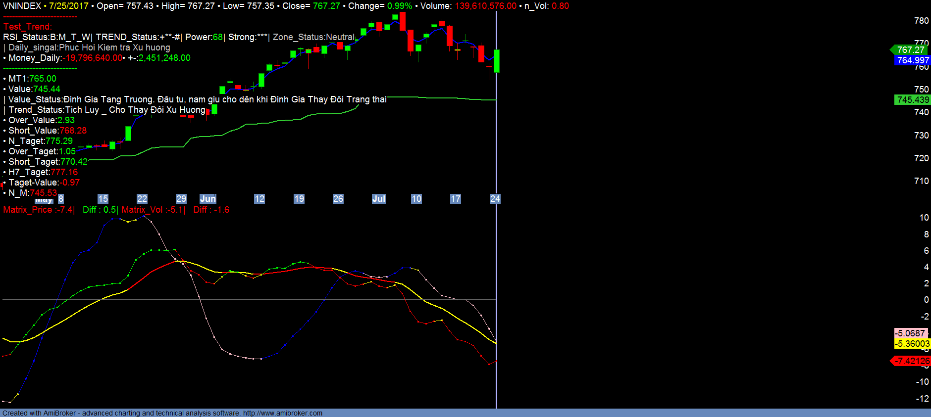 + Như vậy VNINDEX đã hồi phục như dư kiến, hiện nay kháng cự trend ngắn hạn của VNINDEX là 769-770 và VNINDEX cần có 2-4 phiên vượt và duy trì trên vùng giá trị ngắn hạn Short_value để lôi kéo xu hướng giá tăng trưởng trở lại. NDT có thể giao dich ngắn hạn các mã tăng trưởng, ưu tiên hàng có sẳn với mức kỳ vọng hồi phục 5-7%. Ưu tiên các mã tăng trưởng có giá sát định giá hoặc thấp hơn định giá. Các mã có xu hướng trend mới cũng có thể tham gia trading. Chỉ nên mua mạnh và an toàn nhất khi tín hiệu Lượng đi trước giá -Money_in tăng vượt Trend_up trong ngắn hạn được xác nhận và test lại thành công. Chi tiết tham khảo Matrix_Filter.