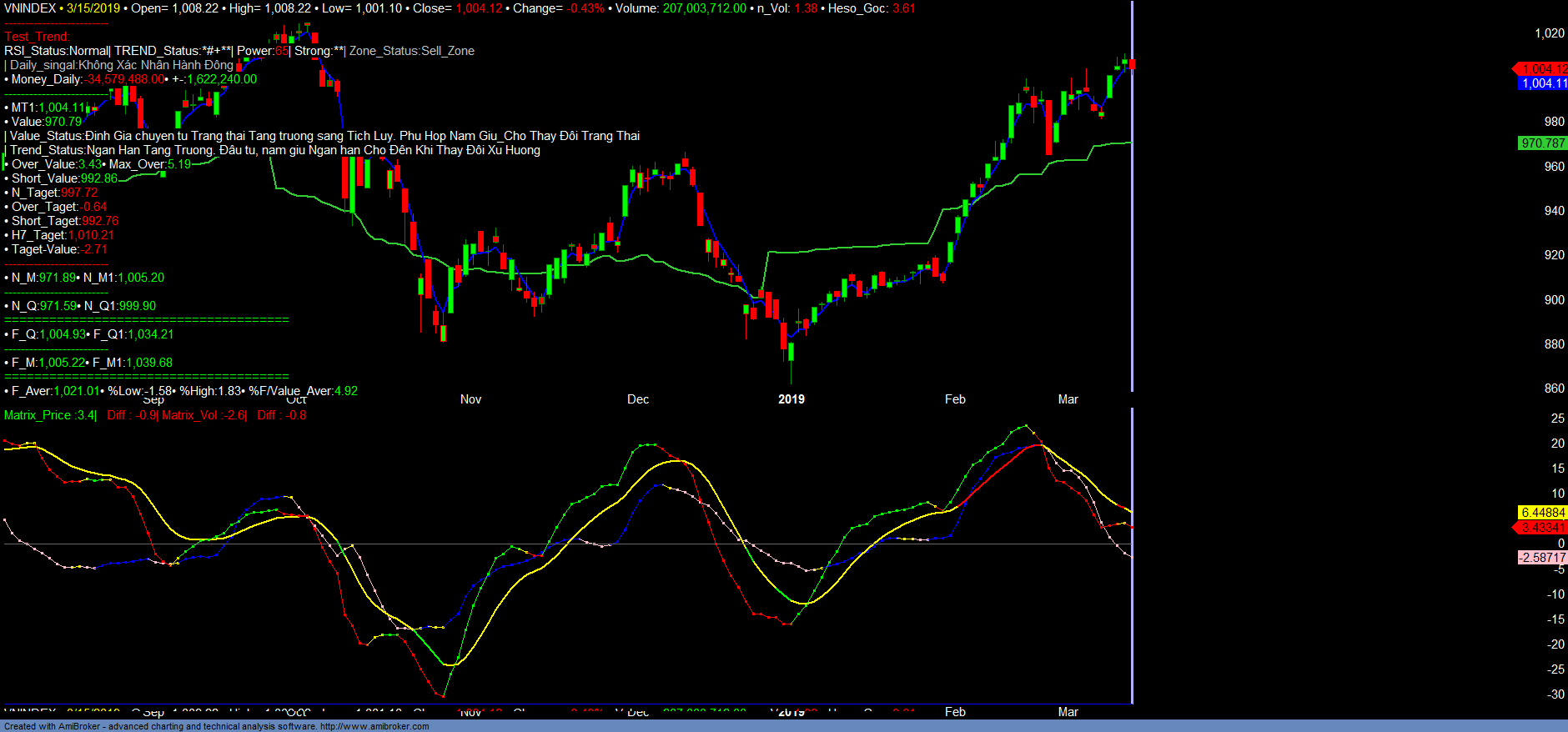 + Trend_up tăng, Money_in tăng nhẹ. Số lượng mã vào vùng Bán vẫn lớn hơn vùng mua. Thị trường vẫn đang trong vùng bán ngắn hạn.
