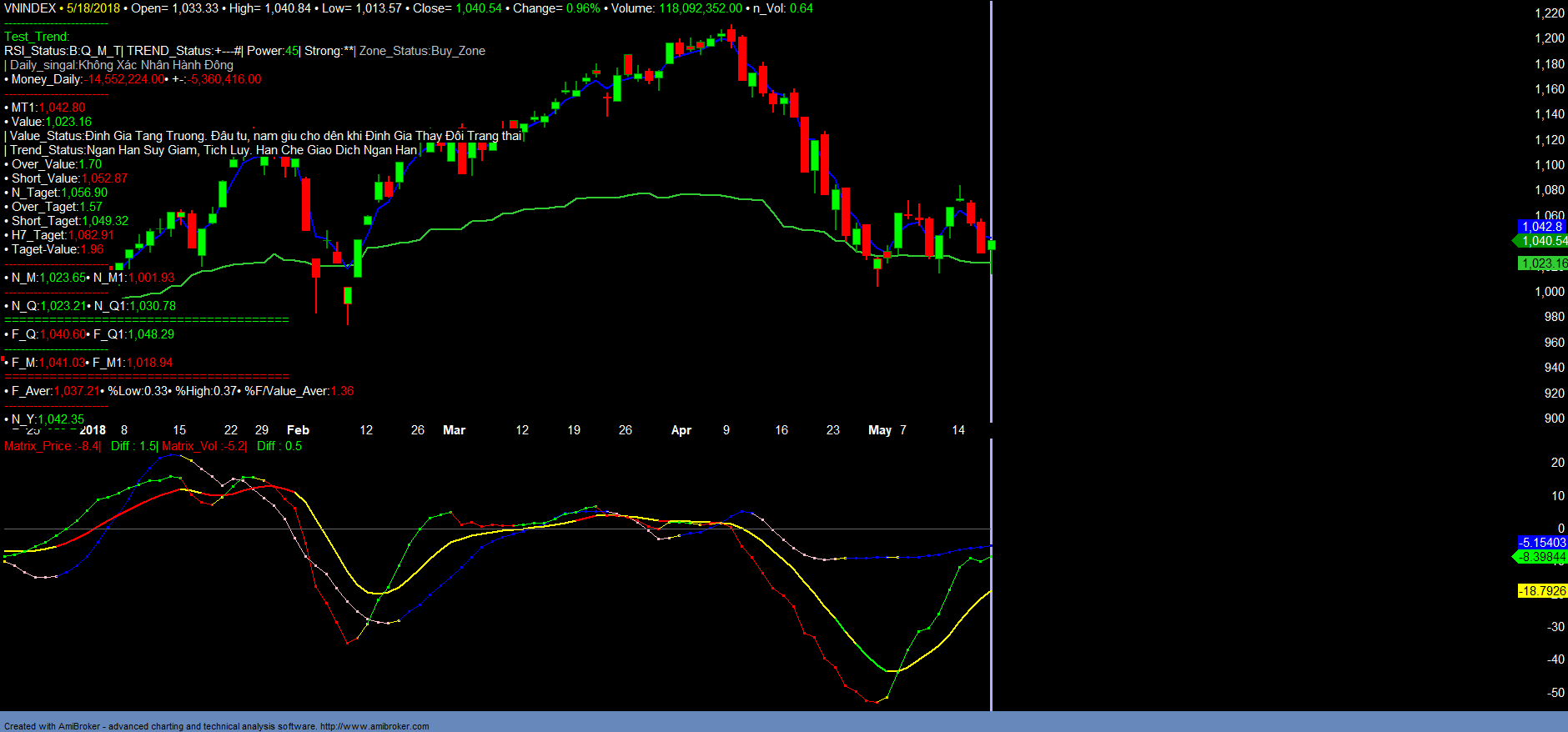 + Trend_up tăng, Money_in giảm. Trend_up tiếp tục tăng cho thấy nội lực ngắn hạn của thị trường vẫn duy trì tốt, tuy nhiên dòng tiền lại giảm nhẹ. Cần theo dõi dòng tiền, thanh khoản cần tiếp tục cải thiện trong những phiên đến, mới có thể lôi kéo dòng tiền Money_in quay trở lại và xác nhận xu hướng ngắn hạn tăng trưởng.
